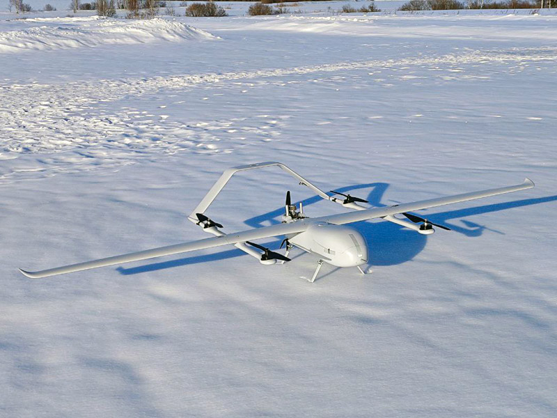 Большой самолет с вертикальным взлетом и посадкой. Вес полезной нагрузки до 9 кг, длительность полета до 6 часов, круизная скорость 90 км/ч. Предназначен для транспортировки грузов, термальной фото- и видеосъемки, лазерного сканирования, аэрофотосъемки больших площадей и протяженных объектов. В стандартной версии установлен двухтактный бензиновый инжекторный маршевый двигатель DLE60CC EFI мощностью 7 л.с. со встроенным электростартером и генератором. Разборная компоновка удобна для транспортировки, композитный корпус из стекловолокна и усиленные крылья обеспечивает большую жесткость и устойчивость к перегрузкам, во время полетов при сильном ветре и на больших высотах. Используется для геодезической и топографической съемки, инспекции протяженных объектов и больших площадей, сельскохозяйственных и других целей. Полет производится в автоматическом режиме с возможностью коррекции полета оператором с наземной станции. Широкие возможности модернизации позволяют установить практически любое оборудование в пределах массогабаритных характеристик (геодезические камеры и платы, камеры для сельского хозяйства такие как Parrot Seqouia, Red Edge и др, устройства сброса грузов, метеорологическое оборудование и др.) На БПЛА установлен полетный контроллер с тройным резервированием датчиков в изолированном, демпфированном блоке с контролем и стабилизацией температуры, что дает возможность осуществлять стабильную работу при любых температурах. В составе контроллера три трехосевых магнетрометра, два барометра, инерциальная система с тремя трехосевыми гироскопами и тремя трехосевыми акселерометрами, система самодиагностики, система инерциальной коррекции и система автовозврата при потере связи.