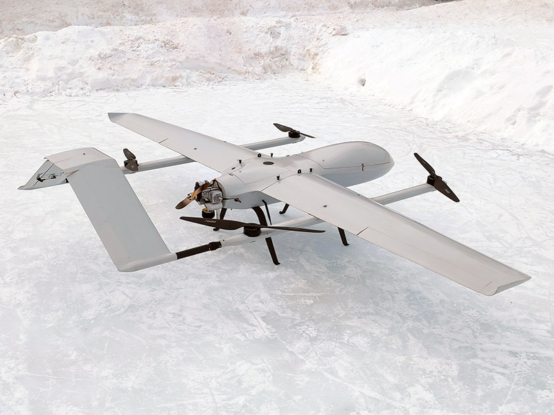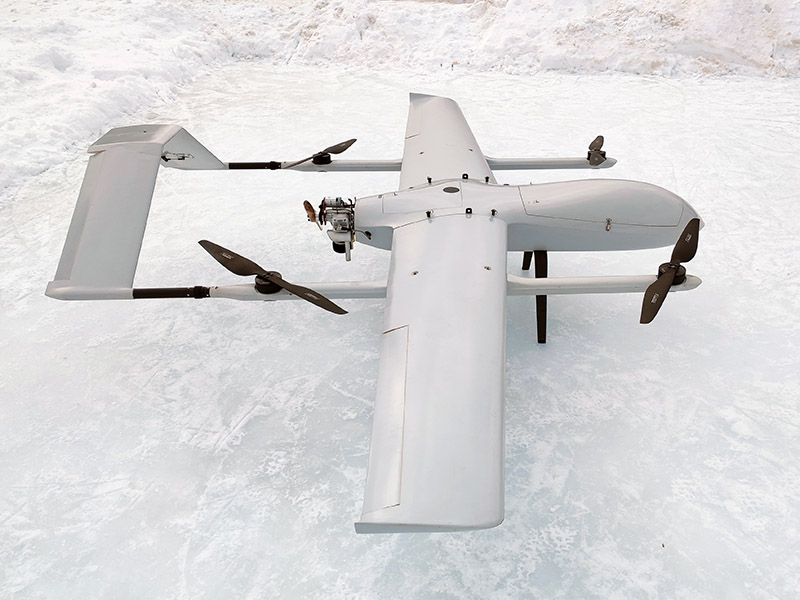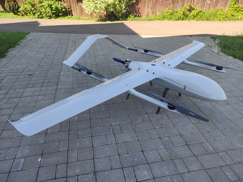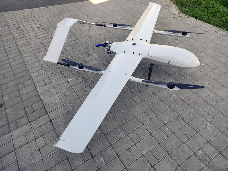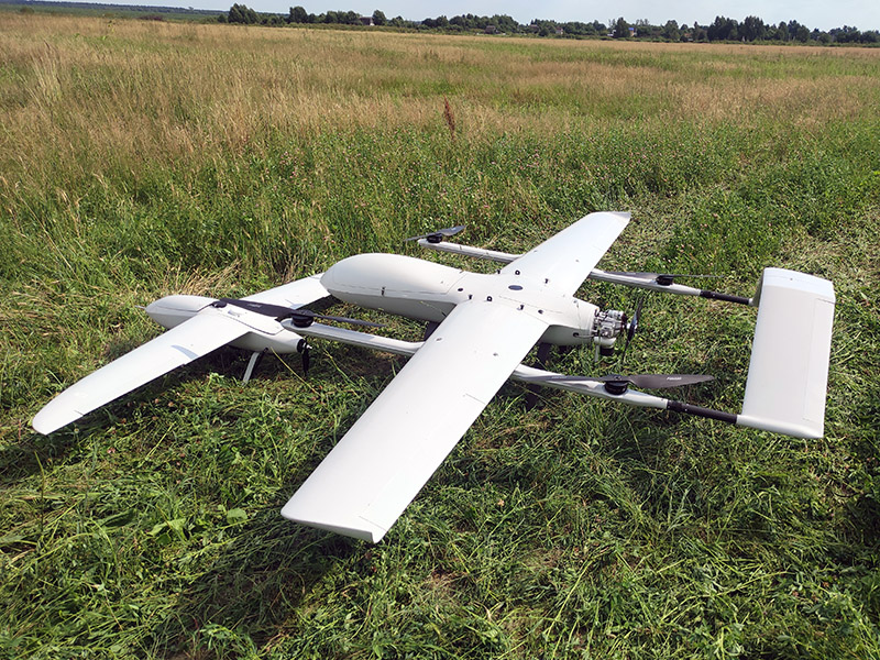 Большой самолет с вертикальным взлетом и посадкой. Вес полезной нагрузки до 12 кг, длительность полета до 8 часов, круизная скорость 108 км/ч. Предназначен для транспортировки грузов, термальной фото- и видеосъемки, лазерного сканирования, аэрофотосъемки больших площадей и протяженных объектов. В стандартной версии установлен двухтактный бензиновый инжекторный маршевый двигатель DLA 116 EFI мощностью 12 л.с. со встроенным электростартером и генератором. Разборная компоновка удобна для транспортировки, композитный корпус из стекловолокна и усиленные крылья обеспечивает большую жесткость и устойчивость к перегрузкам, во время полетов при сильном ветре и на больших высотах. Используется для геодезической и топографической съемки, инспекции протяженных объектов и больших площадей, сельскохозяйственных и других целей. Полет производится в автоматическом режиме с возможностью коррекции полета оператором с наземной станции. Широкие возможности модернизации позволяют установить практически любое оборудование в пределах массогабаритных характеристик (геодезические камеры и платы, камеры для сельского хозяйства такие как Parrot Seqouia, Red Edge и др, устройства сброса грузов, метеорологическое оборудование и др.) На БПЛА установлен полетный контроллер с тройным резервированием датчиков в изолированном, демпфированном блоке с контролем и стабилизацией температуры, что дает возможность осуществлять стабильную работу при любых температурах. В составе контроллера три трехосевых магнетрометра, два барометра, инерциальная система с тремя трехосевыми гироскопами и тремя трехосевыми акселерометрами, система самодиагностики, система инерциальной коррекции и система автовозврата при потере связи.