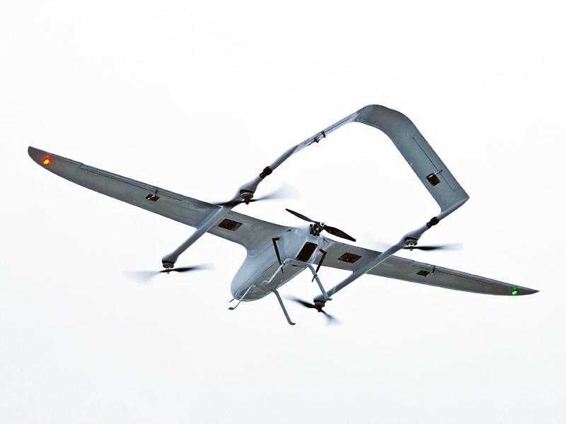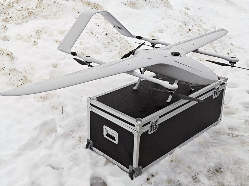 Геодезический самолет с вертикальным взлетом и посадкой VolJet VT5, оснащен геодезической системой Emlid Reach M2 L1L2 (или аналог) и камерой SONY A6000 (или аналог) на гиростабилизированной платформе. позволяет выполнять взлет и посадку в сложных условиях ограниченного свободного пространства, что было доступно ранее только для коптеров. Теперь не нужно искать подходящую площадку для взлета с катапульты и посадки на парашюте и тратить на это значительное время, достаточно небольшой площадки или дороги. Самолет модели VT5 может находиться в воздухе значительное время, превосходящее большинство БПЛА самолетного типа. Максимальное время полета VolJet VT5 более 2х часов, со скоростью 70км/ч. Полет производится в полностью автоматическом режиме с возможностью включения функции следования рельефу местности. Базовая версия самолета предназначена для установки оборудования заказчика. Версия GEO используется для геодезической и топографической съемки больших площадей, труднодоступных удаленных мест и протяженных объектов на камеры класса SONY A6000, A7R, RX1 и др. Камеры устанавливаются на 2х осевую гиростабилизированную платформу. Версия Vision оснащается камерой со встроенным стабилизированным подвесом с десятикратным приближением и возможностью передачи FullHD видеопотока на расстояние до 10 км.