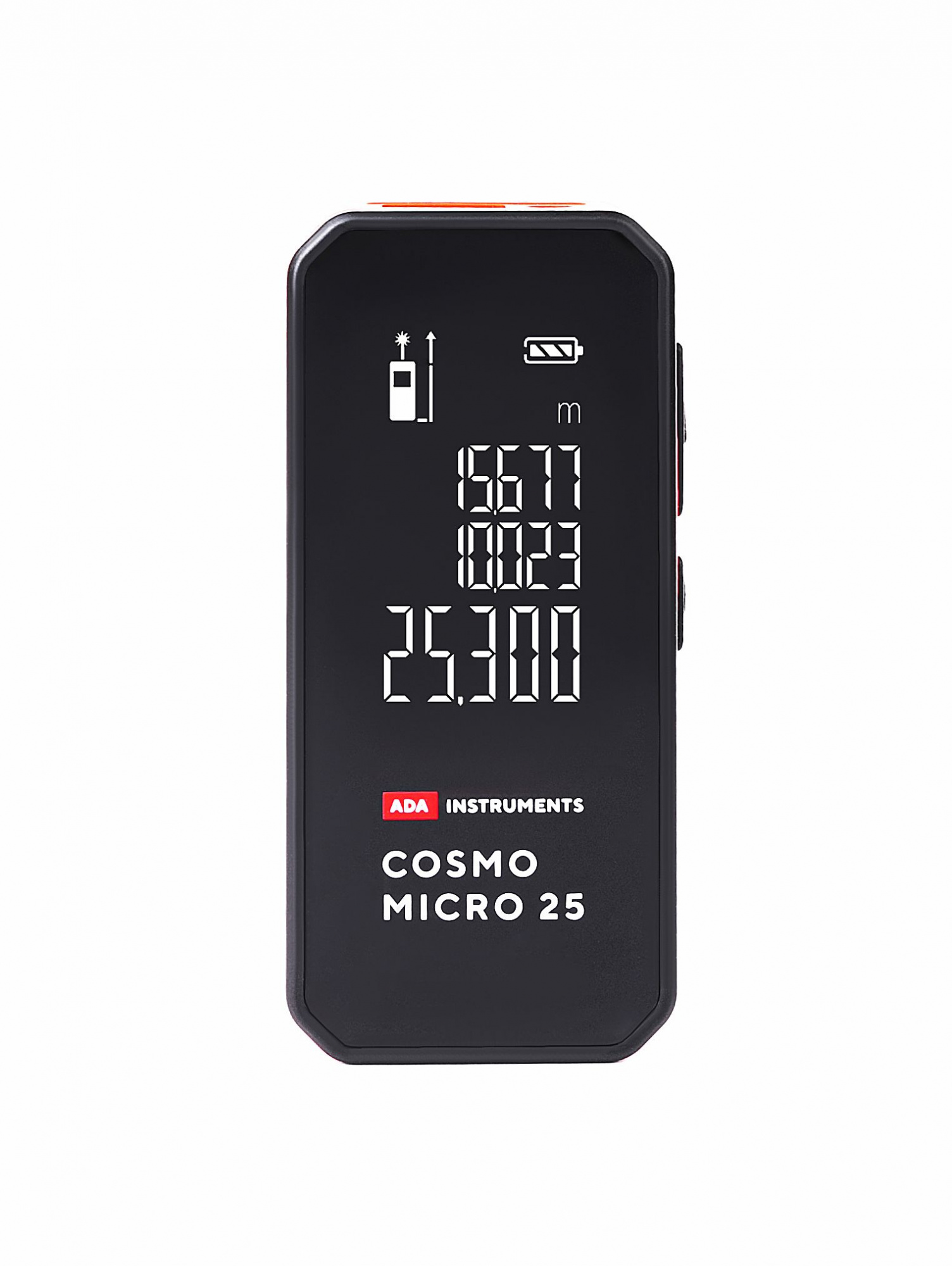 Точность и дальность. Лазерный дальномер ADA COSMO MICRO 25 предназначен для измерений дистанций до 25 метров с погрешностью ±3,0 мм. Если Вы заметите, что погрешность превышает заводские настройки, то калибровку можно произвести самостоятельно без обращения в сервисный центр.